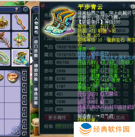 100级破血狂功鞋子,10锻黑宝石,熔炼后防御+73,敏捷+44。