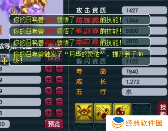 这位玩家的运气真的太好了。他给一只白板谛听吃月华露,不仅触发了灵佑瞬间提升至30级,而且还直接领悟了3个技能,更重要的是观照万象和群法都成功领悟到了。轻轻一点价值翻了好几倍,简直是老天赏饭吃啊。