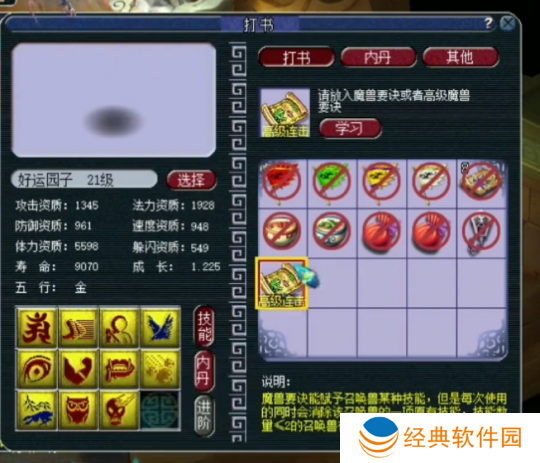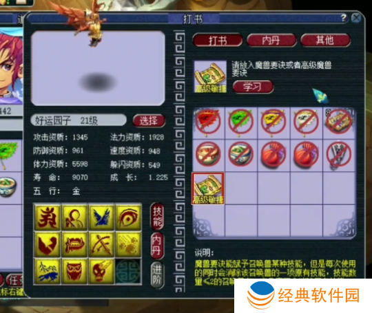 最后,再上一本高级夜战,飞行技能被打掉,此时仅剩下一个蓝书技能——神佑。考虑到小神佑也有其实用性,他决定不再冒险继续打书,果断收手了。