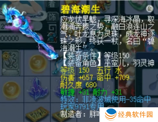 近日,有名凌波城少侠在鉴定150武器时,弹出专用选项,确认后还炸出了物理系的梦想。这是一把初总伤893且敏耐双加62的法杖,如果为其镶嵌满锻红玛瑙,综合伤害就能到达1053!可惜号主等级已经175了,不然能在天启组大放异彩,不过现在也能玩玩三攻、打打帮战联赛。
