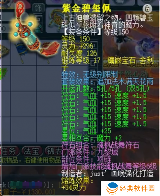 基础灵力228,镶嵌17锻舍利子的无级别项链。