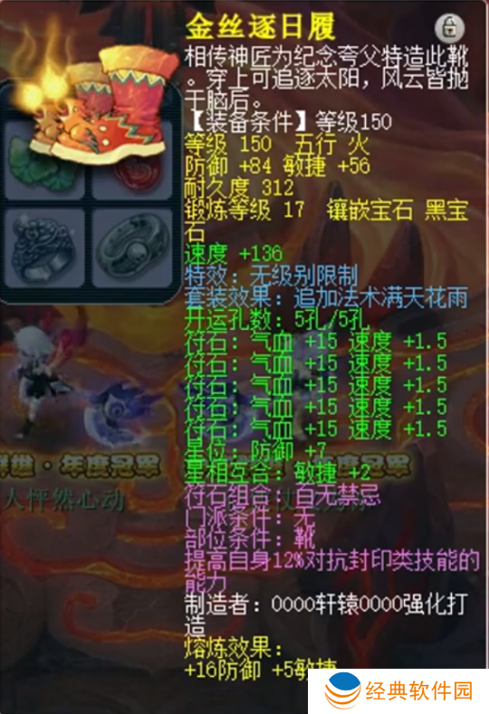 基础防御100,基础敏捷61,镶嵌17锻黑宝石的无级别鞋子。
