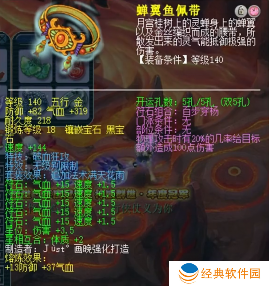 重头戏来啦,基础防御95,基础气血356,镶嵌18锻黑宝石的无级别破血狂攻腰带!
