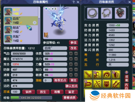 综上所述,这位玩家不仅拥有两把适应不同场合的无级别武器,其宝宝阵容也极为强,输出玩家就需要配备多只卡速,可以开封印卡药等,带净台辅助宠在pk中可以更灵活操作。