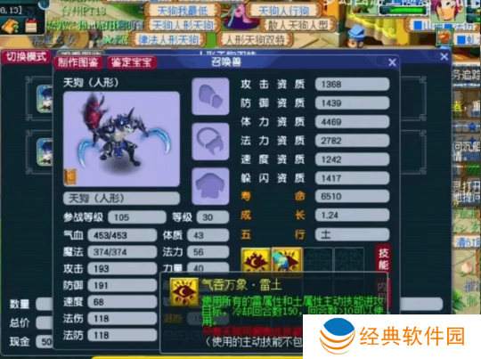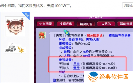 新资料片在测试服上线后,天狗无疑成为最炙手可热的新召唤兽,而天狗的价格也一路飙升至1000w梦幻币,甚至还在不断上涨。更值得一提的是,过去许多携带特殊技能的宝宝只能175级捕捉,而这次的天狗(人形)限定为只有100-154级的玩家才会在暗雷中遇到,129的玩家正巧可在青丘同时遇到月魅,胡不归,涂山瞳以及天狗(人形),成为新一代场景霸主!