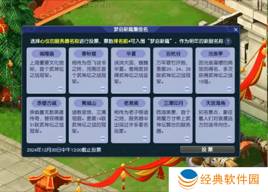 三、明年的服务器名称由玩家自己投票决定
