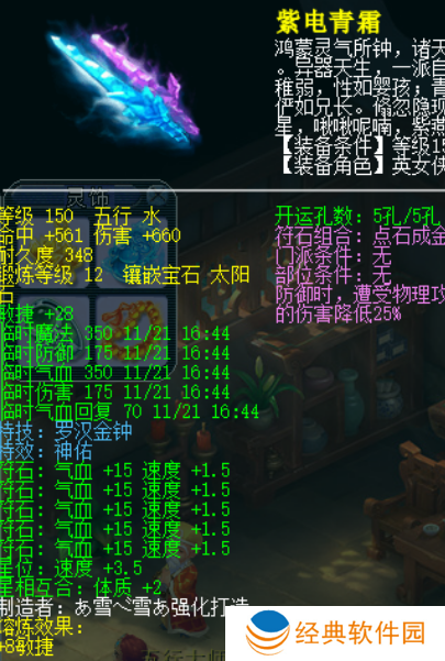 有老板分享了一把PK武器,为150神佑罗汉双加,它附加了36敏、打12锻太阳石有660高伤。