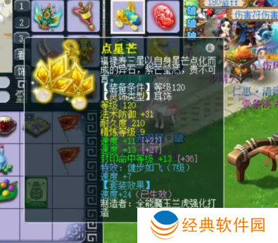 120级佩饰,主属性速度,下排气血防御法防,带7级健步如飞。