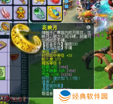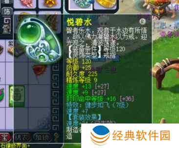 120级耳饰,主属性法防,下排2速度1封印,带7级健步如飞。