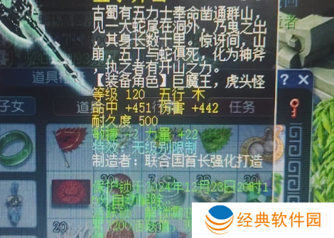 一名玩家日常鉴定武器,意外拿到无级别。这是命中451、伤害442的120无级别斧头,伤害爆了不少还加22力,卖个万把块美滋滋。