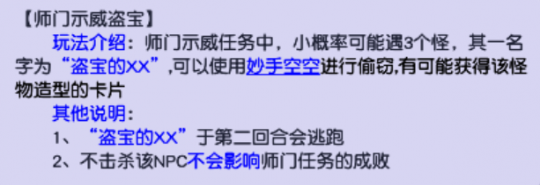 在进行师门**任务的时候,咱常常可以遇到“盗宝的怪物”。