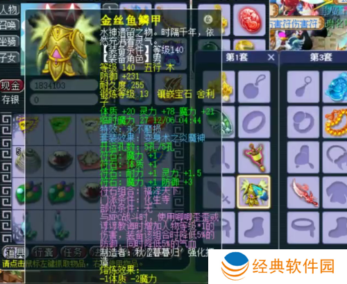 140级不磨男衣,13锻舍利子,防御+231,魔力+19,体质+19。