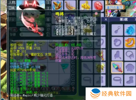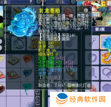 140级佩饰,主属性速度,下排2法防1防御,带7级健步如飞。