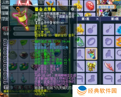 140级不磨项链,13锻舍利子,熔炼后灵力+300。