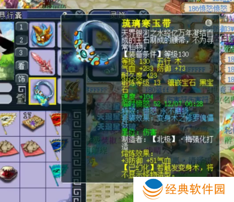 130级愤怒不磨腰带,13锻黑宝石,熔炼后防御+76,气血+334。