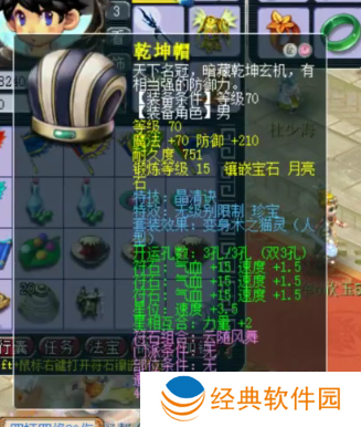 70级无级别晶清诀男头,15锻月亮石,防御+210。