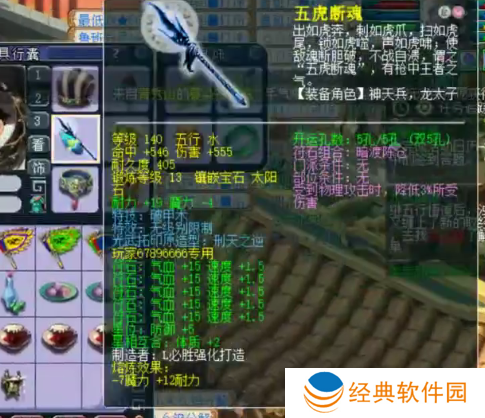 140级无级别破甲术武器,13锻太阳石,伤害+555,熔炼后耐力+31,魔力-11。
