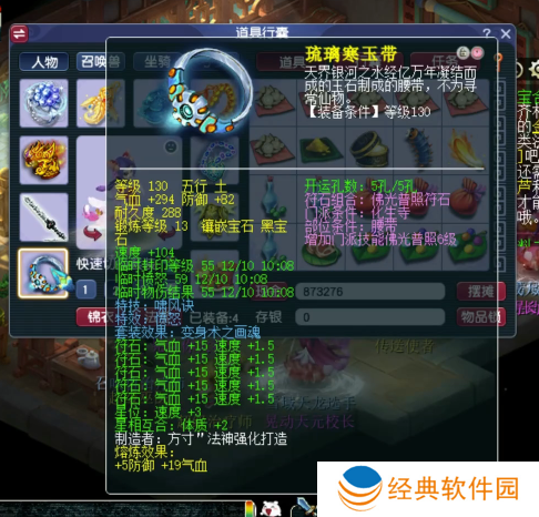 130级愤怒啸风诀腰带,13锻黑宝石,熔炼后防御+87,气血+313。