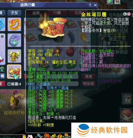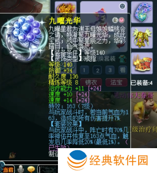 140级耳饰,主属性法防,下排2速度1治疗,带7级163。