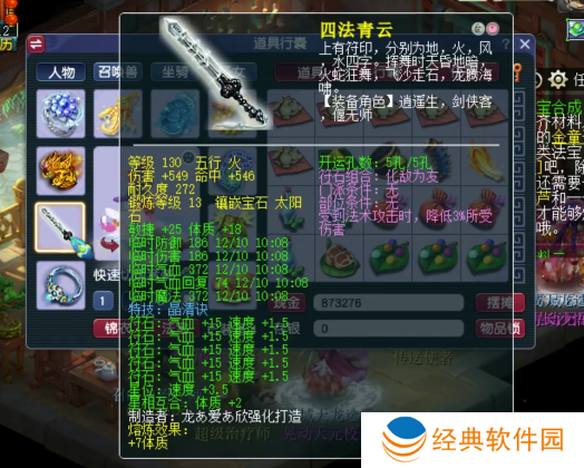 130级晶清诀武器,13锻太阳石,伤害+549,熔炼后体质+25,敏捷+25。