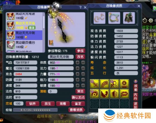 化生寺,作为队伍中的坚实后盾与助力辅助门派,其对硬件的要求自然不容小觑。今日,我们将展示雪域天龙服战队伍中的一位化生寺玩家的装备与召唤兽阵容,让我们一同来领略其风采。