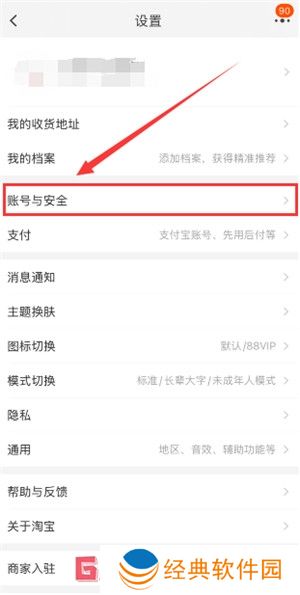 2、在设置页面中,选择账户与安全功能,点击进入。