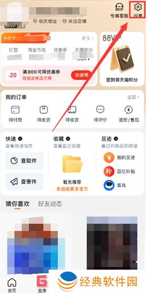 淘宝实名认证修改入口1、进入淘宝中,点击我的,现在右上角的齿轮图标设置里。