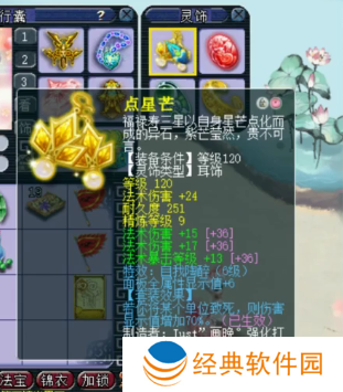 120级耳饰,主属性法伤,下排2法伤1法暴,带6级自我陶醉。