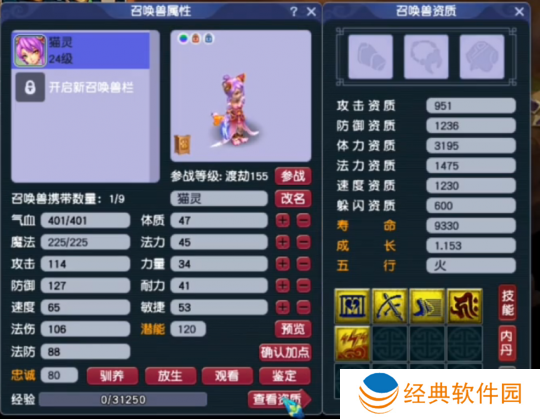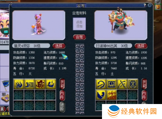 为了打造属于自己的出其不意须弥宝宝,玩家从炼妖环节开始,精心挑选了一只4技能的须弥猫灵和一只6技能的出其不意日游神进行合宠。