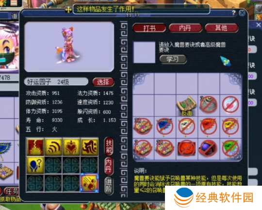 令人惊喜的是,合出的结果是一只5技能的出其不意须弥猫灵,两个特殊技能竟然都成功保留了下来。尽管技能数量不多,但对于任务使用来说已经足够了,于是玩家决定开始打书。