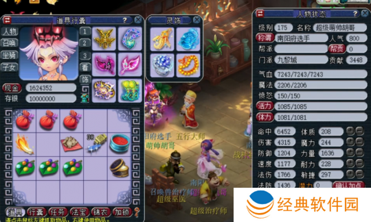 满符面板属性气血7243、伤害4315、防御1204、法防1436。