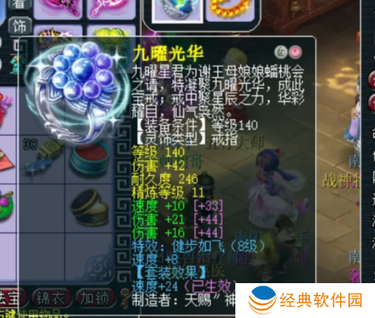 140级戒指,主属性伤害,下排2伤害1速度,带8级健步如飞。
