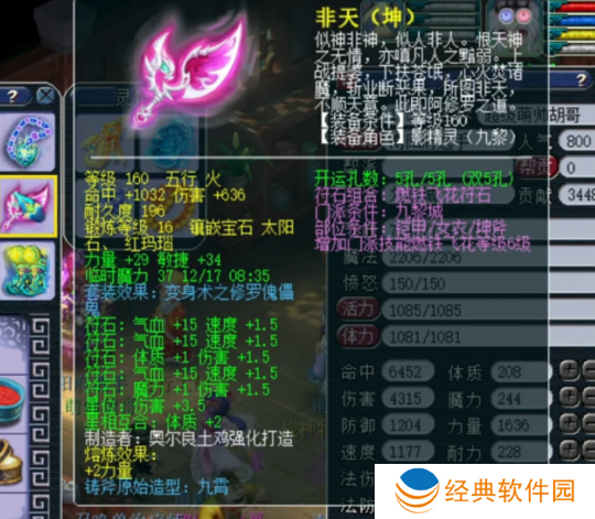 160级武器,16锻太阳玛瑙混打,总伤980,熔炼后力量+31,敏捷+34。