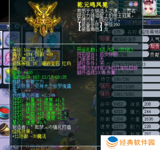 140级耳饰,主属性法防,下排3伤害,带8级健步如飞。