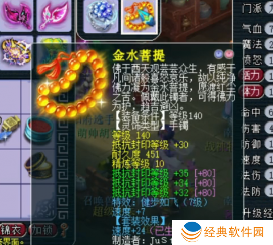 140级手镯,主属性抗封,下排3抗封,带7级健步如飞。