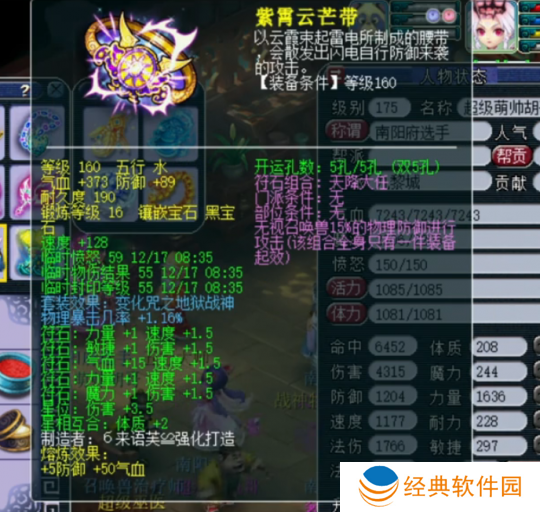 160级腰带,附加物暴几率+1.16%,16锻黑宝石,熔炼后防御+94,气血+423。