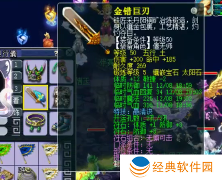 50级晶清诀武器,5锻太阳石,伤害+200。