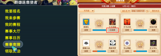 少侠们只要前往长安城(129,106)处,点击群雄逐鹿使者。选择“赛事竞猜”,然后花费200点体力支持自己心目中的劲旅战队(六个组别可以支持六支战队哦)。
