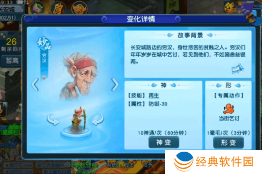 新资料片上线以后各位玩家就可以变身为穷汉,变身为穷汉以后的神通技能是再生,但是需要减少30点防御,但是形变的技能则是让各位玩家拥有一个当街乞讨的功能,也就是可以使用类似于摆摊的功能,路过的玩家可以施舍给乞丐金钱。这样以后会不会出现职业乞讨的玩家呢?