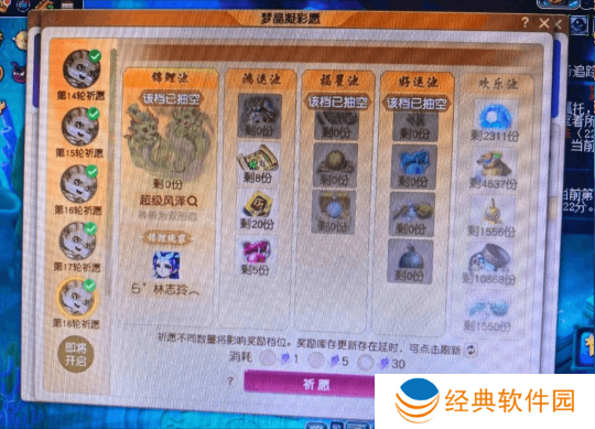 在嘉年华活动中,获得的梦晶石可以在祈福奖池里抽奖,这里可是有神兽大奖的噢!不过五开很多的区就会遇到一个问题,因为大家刷任务太勤快了,奖池很快就会被抽空,最后剩下的奖池只能用30个梦晶石抽取,而且神兽也被抽走了,十分不划算。