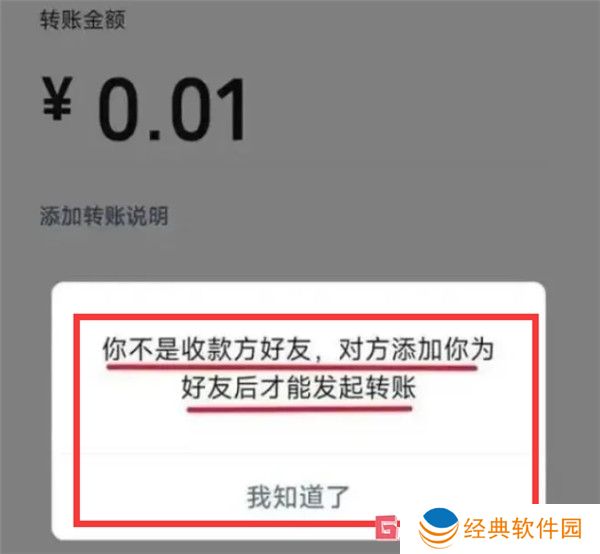 还有个网友分享的转账查看方法,打开要测试的好友聊天框,然后向好友进行转账,转账金额可以任选,当然越少越简单。在转账的时候如果不是对方的好友,就会弹出相对应的提示,就证明已经是被对方删除了。