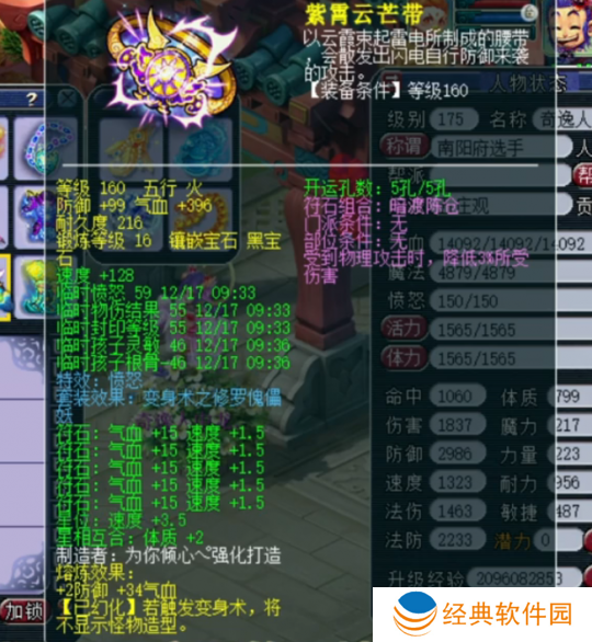 160级愤怒腰带,16锻黑宝石,熔炼后防御+101,气血+430。