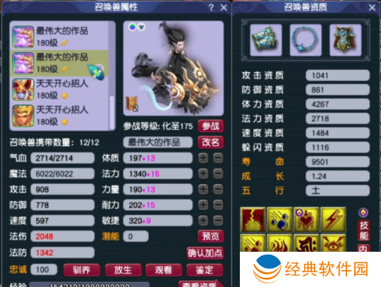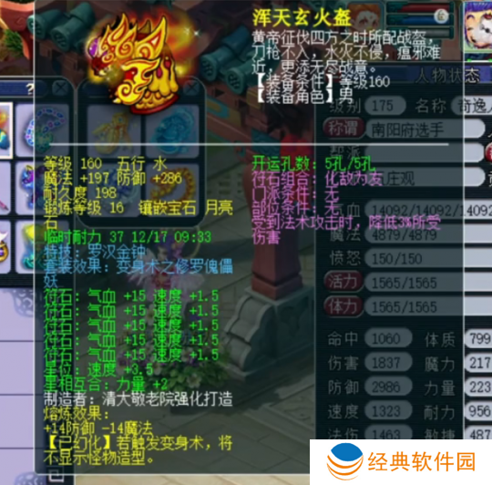 今天来展示南阳府服务器的五庄观,满符面板属性,气血14092、防御2986、速度1323、法防2233。