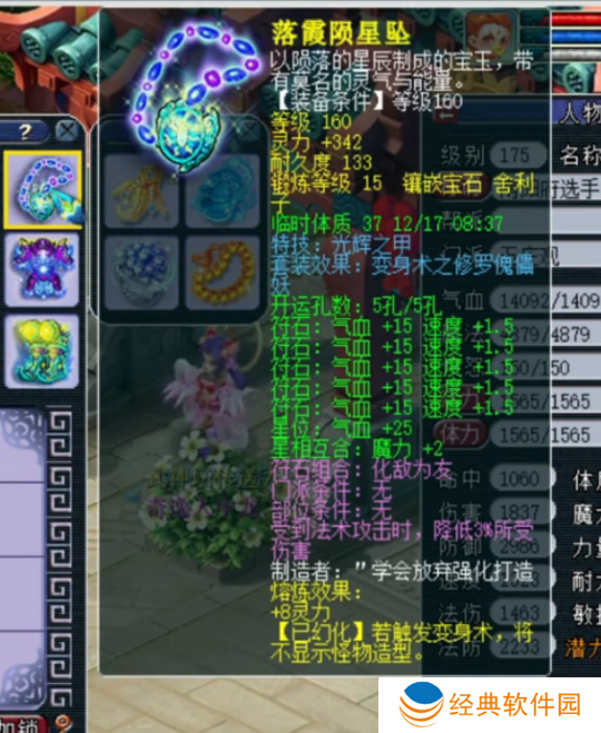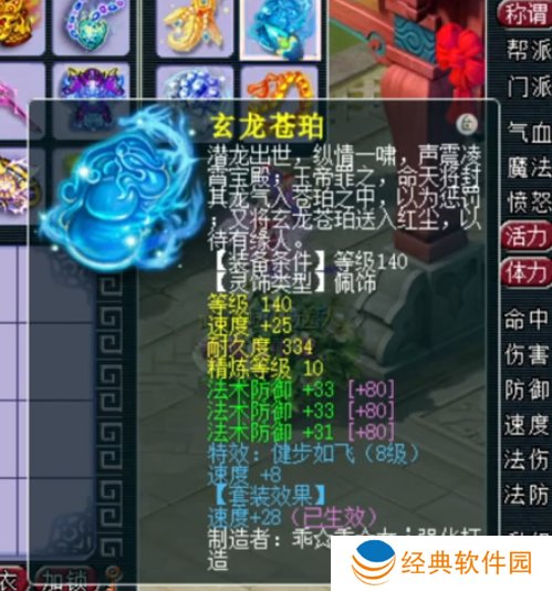 140级佩饰,主属性速度,下排3法防,带8级健步如飞。
