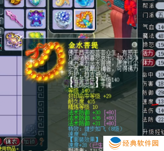 140级手镯,主属性封印,下排3法防,带8级健步如飞。