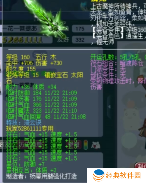 160级 15段体耐双加 70点属性流云剑,这武器很眼熟 以前雪山化生寺武器.