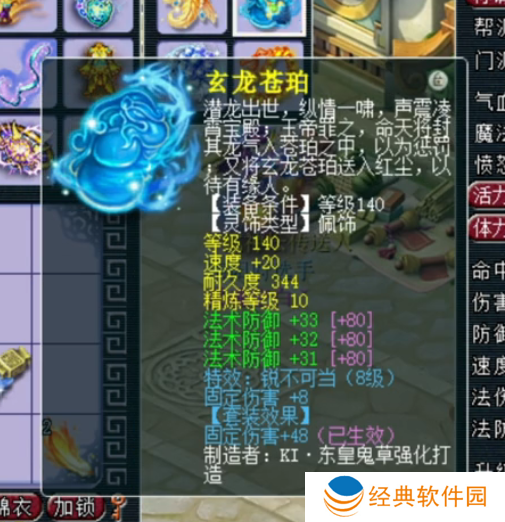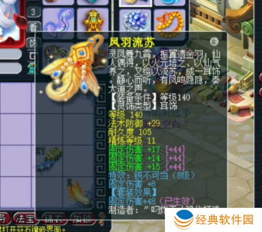 140级耳饰,主属性法防,下排3固伤,带8级锐不可当。