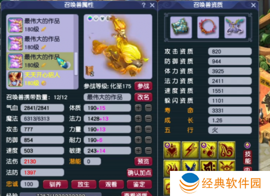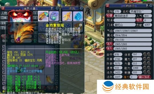 满符面板属性,气血+15907,防御3171,速度933,法防2107。