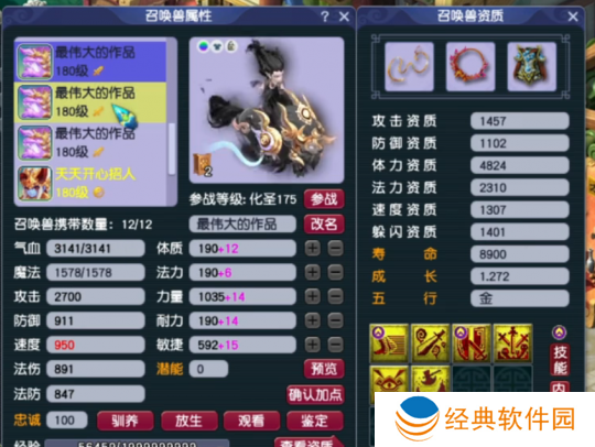 140级佩饰,主属性速度,下排3法防,带8级锐不可当。