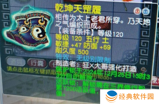 有玩家随手一鉴定,结果出了120无级别鞋子。属性略爆,应该能卖个万把块。